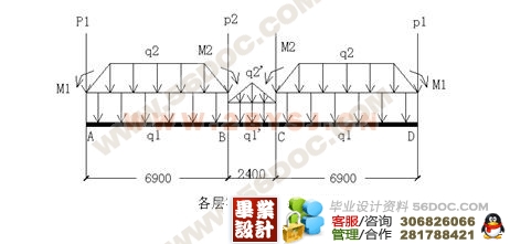 工程概况 建筑地点:武汉市 建筑类型:六层某中学学生公寓楼,现浇框架填充墙结构。 建筑介绍:建筑面积约4000平方米,楼盖及屋盖均采用现浇钢筋混凝土框架结构,楼板厚度取120mm,填充墙采用蒸压粉煤灰加气混凝土砌块。 门窗使用:大门采用钢门,其它为木门,门洞尺寸为0.9m×2.4m,窗为铝合金窗,洞口尺寸为1.5m×2.4m。 地质条件:经地质勘察部门确定,此建筑场地为二类近震场地,设防烈度为7度。 柱网与层高:本学生宿舍楼采用柱距为6.9m的内廊式小柱网,边跨为6.9m,中间跨为2.4m,层高取3.6m 框架结构承重方案的选择: 竖向荷载的传力途径:楼板的均布活载和恒载经次梁间接或直接至主梁,再由主梁传至框架柱,最后传至地基。 根据以上楼盖的平面布置及竖向荷载的传力途径,本宿舍楼框架的承重方案为横向框架承重方案,可使横向框架梁的截面高度大,增加框架的横向侧移刚度。