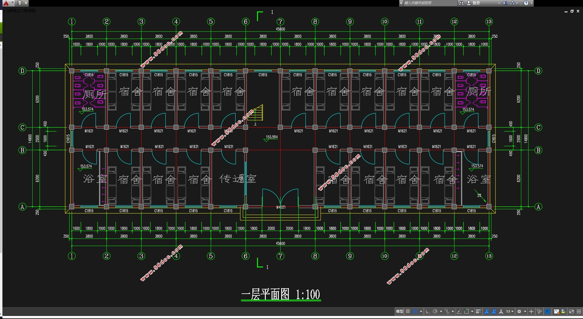 五层3393平米南京某大学学生宿舍楼设计(含建筑图结构图)