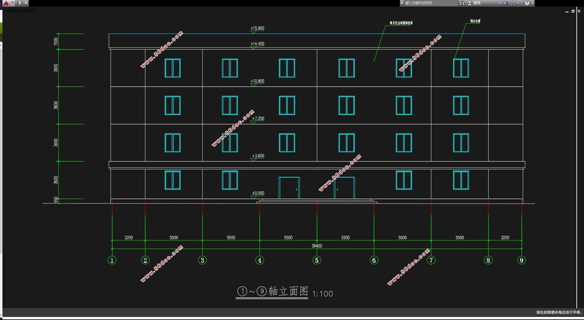 This designchoose axis ⑥ frame calculate to load to go on,The content calculation include: defining magnitude of frame members and calculated sketch of frame, counting loads, calculating internal force of section underlying horizontal and vertical loads, combining internal force, designing section of beams and columns and plate and staircase, and design of the foundation. Horizontal earthquake load is calculated by equivalent base shear method, internal force is calculated underlying horizontal loads by D value method,internal force is calculated underlying vertical loads by iterative method. Earthquake is and not is considered in Combination of internal force. For this frame belonging to third class frame, not counting intersection of beams and columns, but this design obeys the design philosophy of “strong column and weak beam”. Staircase is plate-type. The foundation is independent foundation under column.