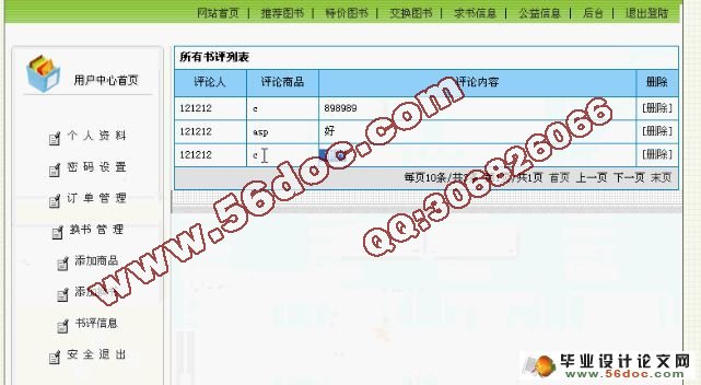 本论文所介绍的系统以配合图书单位实现网上电子商务,进行交换图书与图书销售等工作,在本论文中,主要阐述了网上图书管理系统的需求分析、系统总体设计方案、各模块功能及流程实现、系统的评价与维护等,通过本系统主要可以完成:对各类书籍进行分类,可方便地进行查询。记录注册用户的信息,对注册用户给予优惠服务、能够存贮并随时查看用户所选择的书籍,并计算出总价格。并可以生成用户的购书订单。可以交换图书,发布书评,发布信息。该系统界面灵活,以网页形式出现,简单易于操作,而且采用模块化和面向对象的程序设计,为用户节省大量时间,能达到快捷、迅速、准确的效果。
