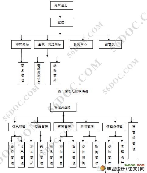 在前台系统中有六个子模块,分别是用户注册登陆、用户商品管理、对商品或商家信息浏览和查询、购物篮、新闻中心和留言板。后台系统中有订单管理、运输管理、商品管理、管理员管理、新闻管理、用户留言管理六个子模块。在用户注册模块中,特别加强了用户注册信息验证的严格性;在商品或商家信息浏览和查询模块中,用户可以对商品进行浏览检索,查看商品及商家的详细资料;在商品管理模块中,商家可以发布和管理自己公司生产的产品。在后台系统中,系统管理员可以对已注册的用户进行审查,并对提交的订单进行处理;可以对现有的商品管理;同时还可以对新闻、运输方式和用户留言进行管理。