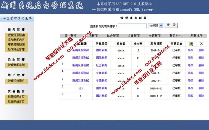 三层架构新闻发布管理系统的设计与实现(ASP.NET,SQL)(含录像)(毕业论文14000字,程序代码,SQLServer数据库)