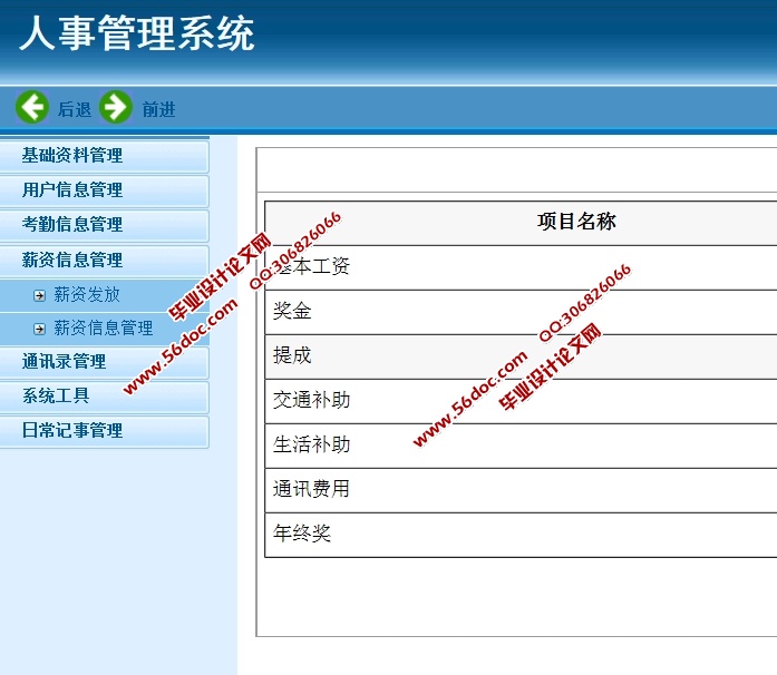 人事管理系统的设计和实现(ASP.NET,SQL)(含录像) 来源:56doc.com 资料编号:5D17170 资料等级:★★★★★ %E8%B5%84%E6%96%99%E7%BC%96%E5%8F%B7%EF%BC%9A5D17170 资料以网页介绍的为准,下载后不会有水印.资料仅供学习参考之用. 密 保 惠 帮助 我要下载该资源 资料介绍 人事管理系统的设计和实现(ASP.NET,SQL)(含录像)(任务书,毕业论文13000字,程序代码,SQLserver数据库,答辩PPT) 系统功能需求 本次的毕业设计的题目是“人事管理系统的设计与实现”,涉及到的内容是建立一个人事管理系统。该系统的基本功能包括员工信息管理,薪资项目信息管理,员工考勤信息管理,工种职位管理,通讯录信息管理,薪资信息管理等功能。 人事管理系统有两类用户,分别是普通用户和管理员,不同的用户拥有不同的使用权限。普通用户可以实现个人信息的修改,修改登录密码,查看薪资信息、通讯录信息、自己的个人信息和考勤信息等功能。管理员比普通用户拥有更高的权限,可以实现修改用户信息、员工信息管理、部门信息管理、职位信息管理、薪资信息管理、通讯录信息管理等功能。经过调研分析,人事管理系统划分为人事管理系统划分为七个模块。每个模块所要完成的任务如下: (1)用户管理模块:对员工的基本信息进行管理,按公司对员工信息的要求实现统一查询和修改。其中,可对职工信息导入和删除。 (2)系统维护模块:在系统中,每一个系统用户都会拥有自己的信息记录,进入系统之后能对自己所具有的信息进行整体查询。 (3)职位管理模块:实现添加、查询、修改和删除职位的相关信息。 (4)部门管理模块:实现添加、查询、修改和删除部门的相关信息。 (5)考勤管理模块:对员工加班、日常记事、旷工等考勤信息进行管理。实现考勤状况的录入、修改、查询和删除,并生成综合考勤报表。 (6)通讯录管理模块:录入、查询和修改员工的通讯录。 (7)薪资管理模块:实现员工月薪或是年薪的统一管理。 开发环境:Microsoft Visual Studio 数据库:Microsoft SQL Server 程序语言:ASP.NET(C#)语言 目录 摘要 1 前言 2 第一章 概述 3 1.1 选题背景 3 1.2 目的和意义 3 1.3 研究现状 4 第二章 相关技术与开发工具介绍 6 2.1 ASP.NET技术框架 6 2.2 B/S架构 8 2.3 数据库技术 8 第三章 系统需求分析 10 3.1系统功能需求 10 3.2 可行性分析 10 3.3.1 需求可行性 10 3.3.2 技术可行性 11 3.3.3 操作可行性 11 3.3.4 经济可行性 11 3.3 业务流程图 12 3.4 系统需求分析 12 3.5 数据流图 13 第四章 系统总体设计 15 4.1 功能模块设计 15 4.2 数据库设计 16 4.4.1 系统E-R图 16 4.4.2 数据库设计 18 第五章 系统详细设计 20 5.1 系统概述 20 5.2 登录模块详细设计 20 5.3 用户信息模块详细设计 21 5.4 日常记事管理模块详细设计 22 5.5 考勤管理模块详细设计 24 5.6 薪资信息管理 25 总结 27 参考文献 28 致谢 29