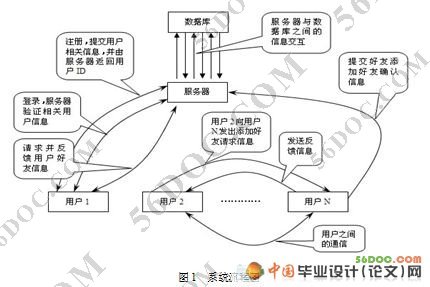 该聊天软件服务器端的功能是实现对客户端提交的用户信息进行处理。服务器设计内容包含:信息接收、注册、登录、刷新、更新、添加好友等。“信息接收”是提供服务器接受客户端发送信息的功能;“注册”是服务器端接受到用户的注册信息请求后,将请求信息写入到数据库,为用户的注册提了相关服务;“登录”是服务器通过验证登录信息来实现相关的服务;“刷新”是对服务器的更新数据每过一段时间进行一次刷新,来显示用户当前在服务器的信息状况,如在线状态等;“更新”是服务器对用户在数据库中信息进行相关的操作;“用户退出处理”是服务器在用户退出聊天系统后作出的相关处理工作;“好友添加”是服务器对添加的好友信息进行处理等相关操作。