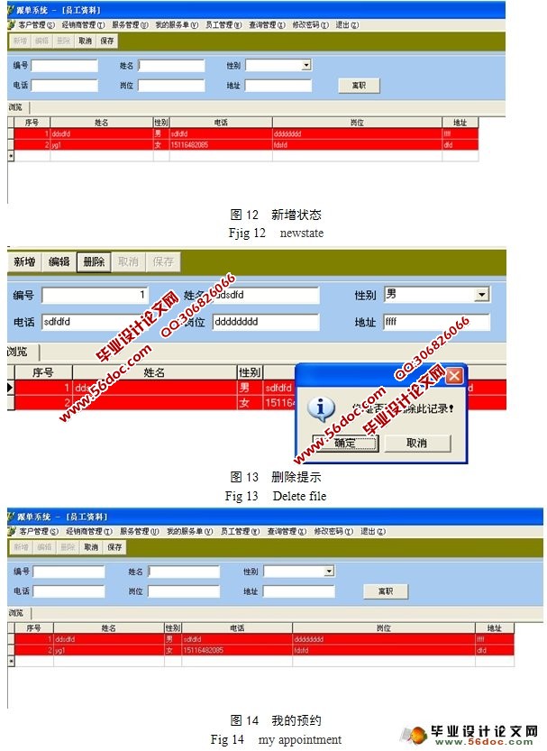 Abstract: In today's information age, ERP management system has become the core of enterprise management part. The graduation design for enterprise order management needs, using Delphi7 language and SQLsever2000database development of a documentary system. System mainly include: customer management, dealer management, service management, service management, my staff management, query management and modify the password function module, realize the enterprise order management. Through this system, customers, suppliers and can directly contact, direct booking service, complaints and returns processing; employee can directly see the customer and supplier 's appointment, complaints and returns, can faster solution that will finish, improve work efficiency. At the same time, this system also can pass through the system of the company staff release training information, to new and old colleagues training, improve the technical level of old colleagues, accelerate new colleague 's identity.