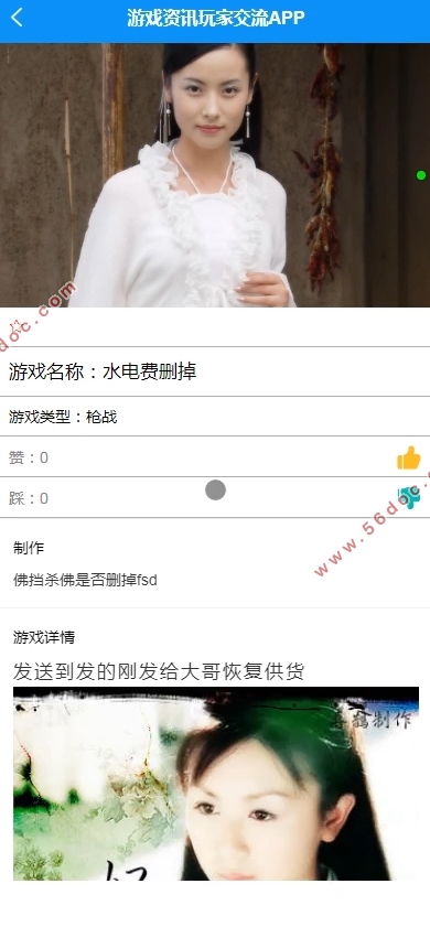 4.    游戏信息:实现游戏信息的列表显示,点击可以查看游戏详情,用户登录后可以收藏、点赞、踩或评论。