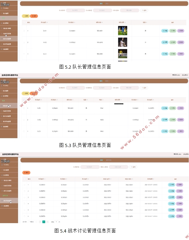 基于安卓Android的业余足球队服务平台的设计与实现(SSM,MySQL)(含录像) 来源:56doc.com 资料编号:5D25972 资料等级:★★★★★ %E8%B5%84%E6%96%99%E7%BC%96%E5%8F%B7%EF%BC%9A5D25972 资料以网页介绍的为准,下载后不会有水印.资料仅供学习参考之用. 密 保 惠 帮助 我要下载该资源 资料介绍 基于安卓Android的业余足球队服务平台的设计与实现(SSM,MySQL)(含录像)(论文说明书10000字,程序代码,MySQL数据库) 系统功能分析 本系统实现一个基于Android的业余足球队服务平台,分为服务器端和客户端两种用户。服务器端可以在网站后台进行管理;用户通过手机端自由登录客户端平台进行管理。具体功能描述如下: 服务器端模块包括: 1. 个人中心:可以修改自己的登录密码,修改自己的信息。 2. 队长管理:可以对队长信息进行添加、查看、修改或删除。 3. 队员管理:可以对队员信息进行添加、查看、修改或删除。 4. 球队简介管理:可以对球队简介信息进行查看或删除。 5. 约战信息管理:可以对约战信息进行查看或删除。 6. 战术讨论管理:可以对战术讨论信息进行查看或删除。 7. 战术回复管理:可以对战术回复信息进行查看或删除。 8. 系统管理:可以对系统公告信息进行添加、查看、修改或删除,对轮播图信息进行查看或修改。 队长模块包括: 1. 队长注册/登录:实现队长的注册和登录。 2. 首页:实现队长,队员、球队简介、约战信息、系统公告的显示。 3. 球队简介:实现球队简介的列表显示,可以添加球队信息,点击可以查看球队信息详情,可以收藏或评论。 4. 约战信息:实现约战信息的列表显示,可以添加约战信息,点击可以查看约战信息详情,可以收藏或评论。 5. 我的:队长登录后可以进入个人中心,在个人中心可以修改自己的信息,可以对队员信息进行添加、查看或删除,可以查看球队简介信息,查看约战信息,查看战术讨论信息,查看战术回复信息,可以查看或删除自己的收藏。 队员模块包括: 1. 队员登录:实现队员的登录。 2. 首页:实现队长,队员、球队简介、约战信息、系统公告的显示。 3. 球队简介:实现球队简介的列表显示,点击可以查看球队信息详情,可以收藏球队简介信息。 4. 约战信息:实现约战信息的列表显示,点击可以查看约战信息详情。 5. 我的:队员登录后可以进入个人中心,在个人中心可以修改自己的信息,可以添加、查看、回复或删除战术讨论信息,可以查看或删除战术回复信息,可以查看或删除自己的收藏。 开发语言:Java 管理端框架:SSM 管理端数据库:MySQL 管理端开发软件:Eclipse/MyEclipse/ 安卓端框架:uniapp 安卓端开发软件:HBuilder X 开发模式:混合开发 目录 1 绪论 5 1.1 系统开发目的 5 1.2 系统开发意义 5 2 关键技术介绍 6 2.1 Android简介 6 2.2 JSP技术概述 6 2.3 MYSQL简介 7 2.4 JAVA语言简介 8 2.5 SSM简介 8 3 需求分析与设计 10 3.1 可行性分析 10 3.1.1技术可行性 10 3.1.2 经济可行性 10 3.1.3操作可行性 10 3.3 系统功能分析 10 3.4 系统功能结构图 12 3.5 系统流程分析 12 3.6 系统运行环境 13 3.7系统设计原则 14 4数据库设计 15 4.1 数据库逻辑结构设计 15 4.2 数据库物理结构设计 17 5 系统的详细设计与实现 22 5.1 服务器端实现 22 5.1.1 后台登陆页面 22 5.1.2 队长管理信息页面 22 5.1.3 队员管理信息页面 23 5.1.4 战术讨论管理信息页面 23 5.2 客户端实现 23 5.2.1 登录模块客户端页面 23 5.2.2 球队简介页面 24 5.2.3 约战信息页面 25 5.2.4 用户信息页面 26 5.2.5 我的收藏管理页面 27 6系统测试 29 6.1 测试的目的 29 6.2 测试的步骤 29 6.3 测试的主要内容 29 结束语 31 致 谢 32 参考文献 33