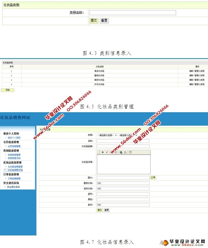 该功能主要完成对网站所卖化妆品信息的管理,包括化妆品信息的添加、查询、删除操作。