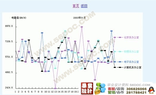 2. 查询部分 每当根据用户选择电力计的情况和选择时间的情况来对数据库进行数据查询,将查询结果返回给客户端,分别以表格和图例两种方式表示。 第四章 总体设计