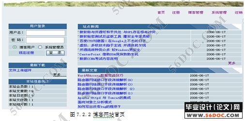 本系统实现了博客网站的基本功能,为博客用户提供了一个在网上展现自己的平台。系统主要分为博客管理员和系统管理员两个大模块,博客管理员模块主要包括:网络日志的发表与管理,文章的发表与管理,相片的上传与管理,文件的上传与管理,个人首页风格设定。系统管理员模块主要包括:新闻的发布与管理,注册会员管理,日志管理,文章管理,相片管理和文件管理。