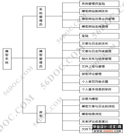 博客管理员与系统管理员可以通过博客首页或相关模块连接进行登录。通过身份验证模块,系统管理员和博客管理员分别进入系统管理员操作界面和博客管理员操作界面。
