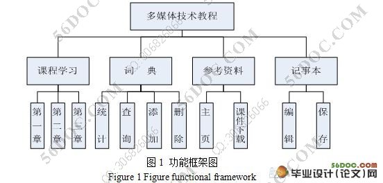 “多媒体技术”双语学习课件由系统运行主界面、课程学习模块、词典管理模块、参考资料模块、记事本模块组成,具体的功能模块如下: