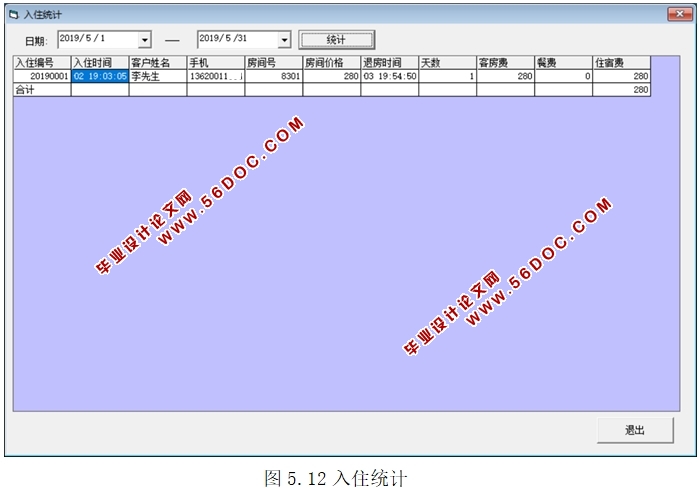 酒店管理系统的设计与实现(C/S结构,VB,SQLserver)(含录像) 来源:56doc.com 资料编号:5D19994 资料等级:★★★★★ %E8%B5%84%E6%96%99%E7%BC%96%E5%8F%B7%EF%BC%9A5D19994 资料以网页介绍的为准,下载后不会有水印.资料仅供学习参考之用. 密 保 惠 帮助 我要下载该资源 资料介绍 酒店管理系统的设计与实现(C/S结构,VB,SQLserver)(含录像)(毕业论文10000字,程序代码,SQLserver数据库) 酒店管理系统是为了给酒店的酒店管理进行信息化管理。如何管理酒店管理的任务,使管理人员可以减少的对酒店管理的工作,提高工作效率。在这种情况下,开发一个中小型酒店管理系统就显得非常必要。酒店管理系统是把酒店客房档案和订餐数据信息等进行信息化,通过计算机的管理,可以将信息直观的提供给酒店的管理人员,加强对酒店管理的优化分配,充分发挥人和物的作用,提高中小型酒店管理整体工作效率。酒店管理系统结合实际的酒店管理的实际管理情况,经过对酒店管理人员实际的需求分析,采用功能强大的VB作为开发语言,后台数据库采用SQLSERVER而开发出来的酒店管理系统。 酒店管理系统是采用VB作为编程工具,外加SQL sever作为数据库来进行编写。系统模块分别是用户登录模块、系统管理模块、客房管理模块、订餐管理模块、信息查询模块。系统管理模块主要实现用户管理、密码修改。客房管理包括客房设置,预订,入住,退宿管理。订餐管理包括客房订餐和会议订餐。查询统计包括预订浏览和入住统计。 开发环境:Visual Basic 数据库:Microsoft SQL Server 目 录 第1章 概述 1 1.1课题的背景和意义 1 1.2研究内容 1 1.3系统开发方法 2 1.4本章小结 2 第2章 系统需求调研 3 2.1系统调研 3 2.2 可行性分析 3 2.3系统功能需求分析 4 2.4开发环境介绍 5 2.4.1开发工具 5 2.4.2数据库 5 2.5本章小结 6 第3章 系统分析 7 3.1业务流程分析 7 3.2数据流程分析 7 3.3数据字典分析 8 3.4本章小结 10 第4章 系统设计 11 4.1设计概述 11 4.1.1设计目标与设计方法 11 4.1.2系统代码设计 11 4.1.3系统物理配置方案设计 11 4.1.4 输入输出设计 12 4.2功能设计 12 4.3数据库设计 13 4.4本章小结 15 第5章 系统实现 16 5.1 登录模块实现 16 5.2 系统主界面设计实现 17 5.3 系统管理功能实现 18 5.4 客房管理功能实现 20 5.5 订餐管理功能实现 23 5.6 查询管理功能实现 25 5.7 本章小结 27 第6章 系统测试 28 6.1测试方法 28 6.2功能测试 28 6.3安全测试 29 6.4 本章小结 29 第7章 总结 30 感谢 31 参考文献 32