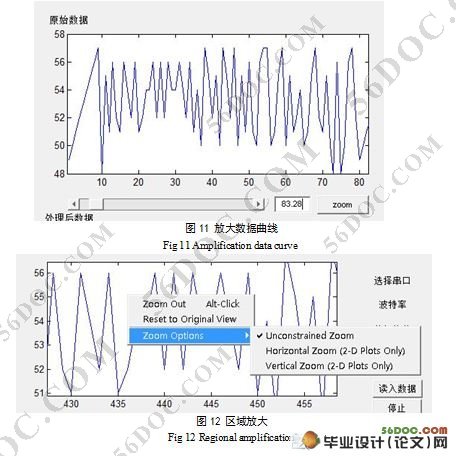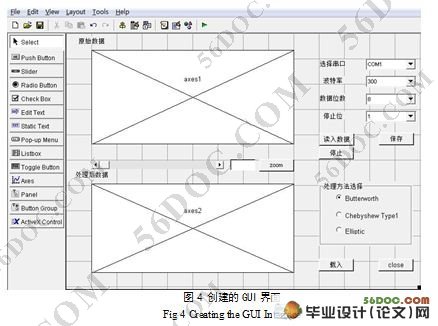 本文第一部分为绪论,主要阐述了研究Matlab/GUI的目的、意义及研究现状。第二部分首先介绍了用户图形界面(GUI)的控件对象类型、属性以及Matlab串口通信技术。要实现自动收发数据,还需要定义串口中断处理函数以及触发串口中断的方式,因此,随后介绍了串口中断设置及中断处理函数。第三部分主要介绍了基于Matlab的GUI设计方法,包括GUI设计程序的标准,创建用户图形界面的步骤以及创建用户图形界面的具体操作方法。第四部分给出了Matlab串口数据采集系统界面的设计过程,串口参数设置,数据读入与停止,曲线显示与图形变换处理等功能的具体实现步骤。设计的重点在于Matlab上实现设计图形用户界面的规划与设计,如何利用Matlab的回调程序编辑器来编写函数代码来实现各个控件的功能。