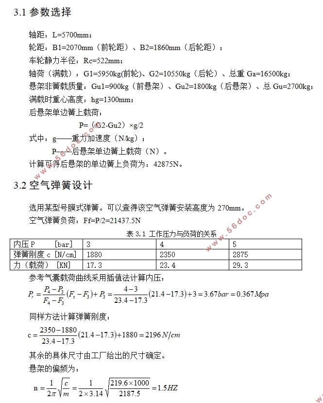 选用某型号膜式弹簧。可以查得该空气弹簧安装高度为270mm。