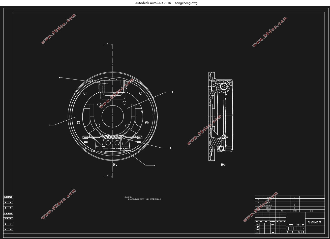 In the vehicle braking system has a very important role, failure will result in disaster if serious consequences. The main parts of the braking system is the brake, in the modern car is still widely used in high performance brake shoe - brake drum. The design of the friction drum brakes were related to the design and calculation. In the design process, based on the actual product, according to our current brake factory general new product development process, and theoretical design requirements, the first model of the vehicle according to the given parameter and the technical requirements, determine the brake structure and, brake main parameters, and then calculate the braking torque brake, brake shoes on the pressure distribution, deformation shoe, brake effectiveness factor, braking deceleration, wear characteristics, brake temperature, etc., and in this brake on the basis of the structural design of major components. Finally, assembly drawings and parts to complete mapping.