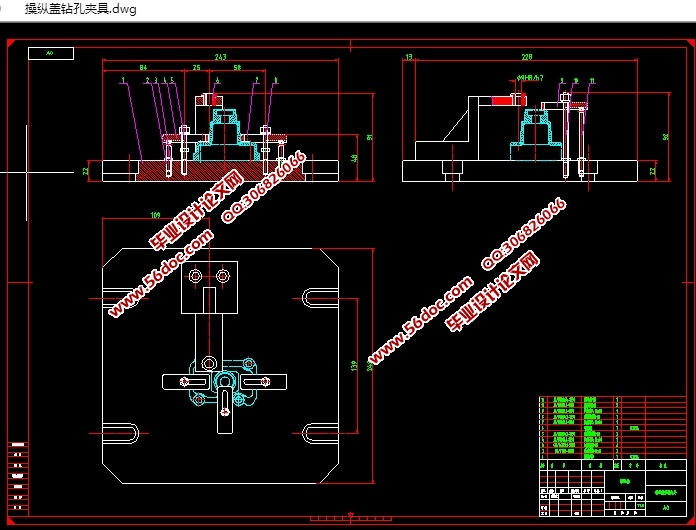 本次设计的主要内容是操纵盖加工工艺规程及 孔钻孔夹具的设计。操纵盖主要是用在汽车变速器上面,其主要加工表面及控制位置为长度为97的底部大端面和 以及 。由零件要求分析可知,保证 孔的精度尺寸的同时应该尽量保证其与底部大端面的垂直度,这对于后工序装配和总成使用上来说都有重要影响。所以,工序安排时,采取以97的底部大端面粗定位夹紧加工后,对 孔进行钻削加工同时成型。因其粗糙度为Ra12.5,可通过钻、绞孔来满足。对于钻 孔时,主要以操纵盖的97的底部大端面定位,控制其自由度,以达到加工出来的产品满足要求并且一致性好的目的。本文的研究重点在于通过对操纵盖的工艺性和力学性能分析,对加工工艺进行合理分析,选择确定合理的毛坯、加工方式、设计高效、省力的夹具,通过实践验证,最终加工出合格的操纵盖零件。