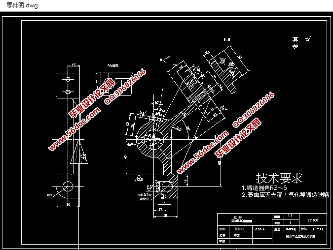零件的材料为HT200,灰铸铁生产工艺简单,铸造性能优良,但塑性较差、脆性高,为此以下是杠杆需要加工表面以及加工表面的位置要求。现分析如下: