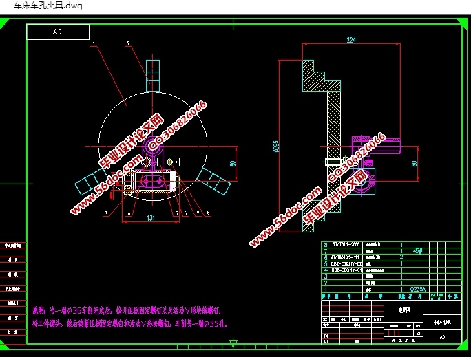 本次设计的主要内容是十字接头加工工艺规程及 孔车孔夹具的设计。十字接头主要是与其它零件配对使用,其主要加工表面及控制位置为 内孔和 内孔。由零件要求分析可知,保证 孔和 孔的精度尺寸的同时应该尽量保证其平行度,这对于后工序装配和总成使用上来说都有重要影响。所以,工序安排时,采取以 内孔粗定位夹紧加工后,对 孔进行车削加工同时成型。因其粗糙度为Ra6.3,可通过粗车、精车满足。对于钻2-M10螺孔时,主要以十字接头的四个侧面定位,控制其自由度,以达到加工出来的产品满足要求并且一致性好的目的。本文的研究重点在于通过对十字接头的工艺性和力学性能分析,对加工工艺进行合理分析,选择确定合理的毛坯、加工方式、设计高效、省力的夹具,通过实践验证,最终加工出合格的十字接头零件。