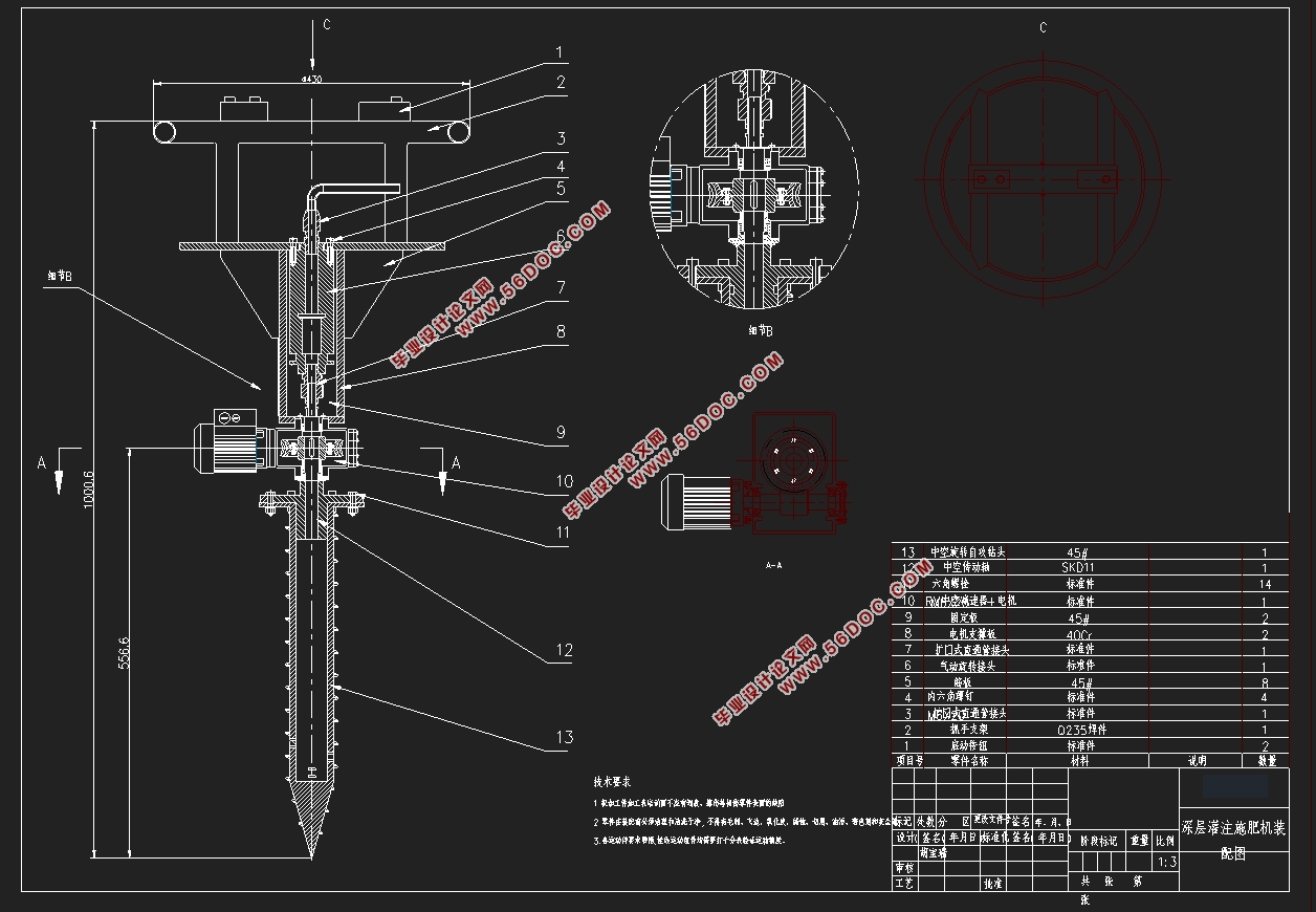 深层灌注施肥机设计(农业机械)(含CAD零件图装配图,SolidWorks三维图)(任务书,文献综述,开题报告,中期检查表,论文说明书8000字,CAD图9张,SolidWorks三维图)
