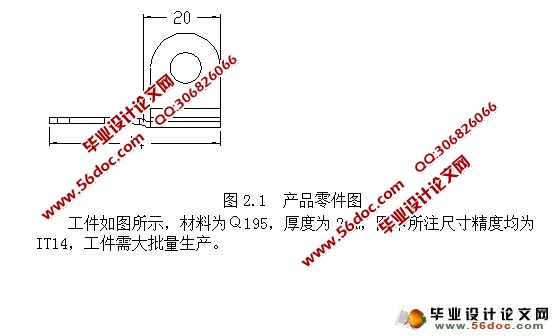 工件如图所示,材料为Q195,厚度为2mm,图中所注尺寸精度均为IT14,工件需大批量生产。