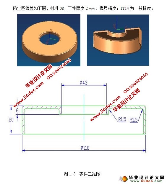 根据零件的设计尺寸要求、材料要求以及批量生产等要求,在分析好零件的工艺性之后,再制定工艺方案。再通过工艺计算来确定此模具的设计流程。模具加工工艺已经成为重要发展方向中的一项先进的制造工艺,如现在在汽车,航空等方面都是在广泛的应用。但是模具的制造成本也是直接影响到制件成本和企业的经济效益。该模具设计的材料厚度比较薄只有1mm,拉深的高度也不是很高,可以二次弯曲成功。精度也不算很高,一般都是在IT11-14级之间。在拉深成形没有达到我们所需要的工件时,可以再在后面加上整形这样一道工序来保证得到我们需要的模具。冲压成形技术早已经成为国内外比较成熟的一种金属成型加工工序,各种板料零件都是用该方法加工的。其的优点有:高效率、 轻重量、 精度好、成本低,而且还有自动化和机械化等优点。在本次设计中,主要考虑筒形零件的落料冲孔以及拉深的成型工艺。最终将落料冲孔再拉深,翻边作为本零件的主要成形工艺。