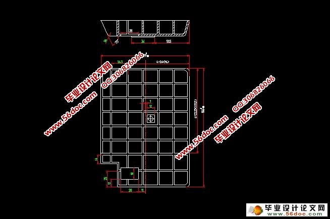 从零件图上分析。该零件总体形状为一成长方形的壳体,长度为139㎜,宽度为186㎜,高度为25㎜,壁厚为3㎜。因其底版面积较大而壁厚较小,为保证其强度与刚度防止塑件变形,所以其上设置了成网格式结构的加强筋,整个底板下部有36㎜,宽186㎜高为1㎜的方形凸台,其宽度方向上两侧面为与底部倾斜角度75°的倾斜面,底部圆角为R6,下方偏左打成长28㎜宽18㎜的方形通孔,中部有一小圆孔,并切去左下角。因塑件形状复杂且其上加强筋形成的网格较多,所以该模具的型心,型腔设计时还需仔细认真。该零件属于中等复杂程度。