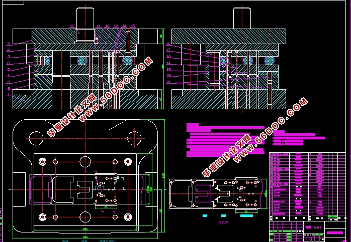 铁心片冲压工艺及级进模具设计(含CAD零件图装配图,STP,PROE三维 来源:56doc.com 资料编号:5D19012 资料等级:★★★★★ %E8%B5%84%E6%96%99%E7%BC%96%E5%8F%B7%EF%BC%9A5D19012 资料以网页介绍的为准,下载后不会有水印.资料仅供学习参考之用. 密 保 惠 帮助 我要下载该资源 资料介绍 铁心片冲压工艺及级进模具设计(含CAD零件图装配图,STP,PROE三维图)(任务书,论文说明书11000字,CAD图纸18张,STP,PROE三维图) 摘 要 金属板料冲压是一种在工业生产中应用广泛的加工方法。随着现代各行各业突飞猛进的发展,金属件的结构复杂,精度高,需求量多,加上对生产的安全性、操作的方便性,加工的经济性等要求也日益提高,采用单工位模具已经无法满足生产的需要,许多制造商均采用多工位级进模进行生产。因此,多工位级进模在国内外模具制造业中应用日趋广泛。多工位级进模是在普通级进模的基础上发展起来的一种模具,是当代所有模具中冲压功能最多、结构最复杂、生产效率和自动化程度最高的一种冲模。在多工位级进模结构设计过程中,首先必须设计级进模的总装结构,然后再在此基础上进行模具其他零部件的设计。本模具采用切废料方式进行冲裁,故模具结构采用冲孔、导正、弯曲、落料的工序设计,排样采用单排横排排列。本论文分析了焊片的冲压工艺性,介绍了焊片多工位级进模总体结构设计,对工件进行了展开计算,确定了工件加工成型的工艺方案和排样方案,对模具进行了工艺计算,根据计算结果进行了凸模、凹模、垫板、导料板、卸料板、镶块等主要零部件的设计,还根据各标准对模具中用到的其他标准件,如模架、导柱导套等,进行了选择与设计。实践证明:该模具结构合理、可靠,并能保证产品质量,对此类零件的级进模设计有参考价值。 【关键词】工艺、工艺性、冲压工序、冲压模具、尺寸 零件图及工艺方案的拟订 1.1.零件图及零件工艺性分析 1.1.1.零件图 工件图:如图1—1所示,两个零件 材料:硅钢, 板厚:0.5mm 产品为铁心片,所选材料为电工硅钢,牌号为D11,产品四周R角过渡,可以有效防止凹模在热处理后应力集中导致开裂。 1.1.2.零件的工艺性分析 产品所用的材料为D11,其力学性能如下:τ=190MPa,σb=230Mpa,(《冷冲压工艺与模具设计》P322),零件图上有公差标注,未注公差的,属于自由公差,按IT12-14级确定工件尺寸的公差。厚度为0.5mm,适中,属于普通冲压件,但有几点应该注意: ①该冲裁件的材料D11,具有较好的可冲压性能。 ②由于板料厚度一般, ③有一定的生产批量,应重视模具材料的选择和模具结构的确定,保证模具的寿命。 ④制件较小,从安全考虑,要采取适当的取件方式,模具结构上设计好推件和取件方式。 目 录 摘 要 1 前 言 3 第一章、零件图及工艺方案的拟订 6 1.1.零件图及零件工艺性分析 6 1.1.1.零件图 6 1.1.2.零件的工艺性分析 7 1.2.工艺方案的确定 7 第二章、工艺设计 9 2.1.搭边值计算 9 2.2.计算工件实际面积 9 2.3.分析排样方案 9 2.4.计算各工序的压力 10 2.5.压力机的选择 14 2.6.压力中心的计算 14 第三章、模具类型及结构形式的选择 18 3.1.级进模的设计 18 第四章、模具工作零件刃口尺寸及公差的计算 20 4.1.冲裁间隙 20 4.2.模具间隙对模具的影响 20 4.3.刃口尺寸计算 21 第五章、模具零件的选用,设计及必要的计算 26 5.1.模具零件的选用 26 5.1.1.成形零件设计 26 5.1.2.支撑固定零件 30 5.1.3.卸料零件 30 5.2.标准件选择 30 5.3.导向装置 32 第六章、压力机的校核 33 6.1.压力机的校核 33 第七章、模具的动作原理及综合分析 34 7.1.模具的动作原理 34 7.2.模具的装配 34 设计心得 36 致 谢 37 主要参考文献 38