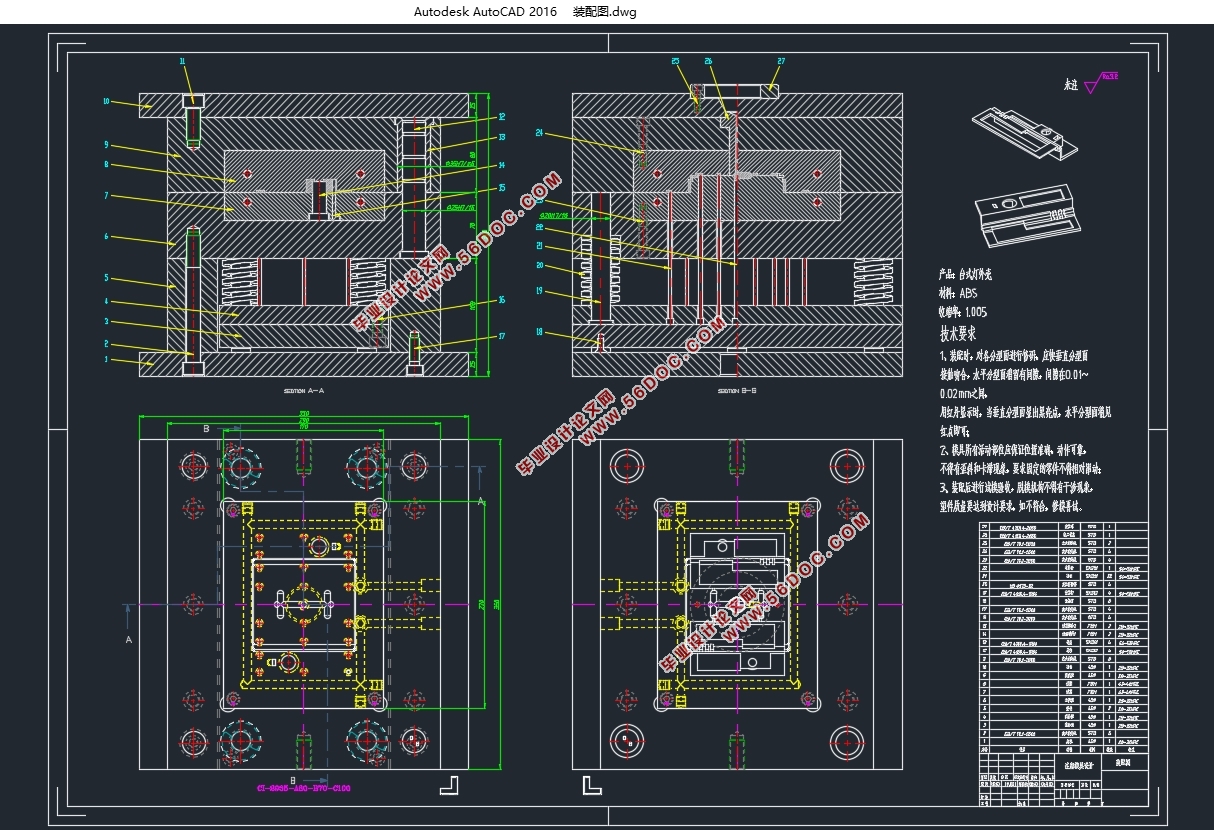 台式灯外壳注塑模具设计(含CAD零件图装配图,UG三维图) 来源:56doc.com 资料编号:5D22019 资料等级:★★★★★ %E8%B5%84%E6%96%99%E7%BC%96%E5%8F%B7%EF%BC%9A5D22019 资料以网页介绍的为准,下载后不会有水印.资料仅供学习参考之用. 密 保 惠 帮助 我要下载该资源 资料介绍 台式灯外壳注塑模具设计(含CAD零件图装配图,UG三维图)(论文说明书14000字,CAD图9张,UG三维图) 2.1塑件的结构分析 本次设计的产品为台式灯外壳,首先通过对该产品进行分析完成二三维绘制可以的到塑件的三维模型,通过对该塑件模型的分析可知该塑件整体中等尺寸,难度适中,经过综合分析适合出一模两腔侧浇口,非常适合采用注塑模具进行生产。 2.2塑件材料的选用及性能分析 该塑件为生活生产中的普通件,没有特殊的性能要求,根据其应用场合与设计要求可以选择ABS作为塑件生产的原材料,ABS在注塑生产中的使用比较广泛,我们生活中的很多塑料制品都选择了ABS作为生产材料,ABS能够得到这么广泛的应用与其优良的综合性能有关。 目录 摘要 I abstract II 目录 IV 第一章绪论 1 1.1注塑模具简介 1 1.2 注塑模具发展国内外现状 5 1.3 国内模具的优劣势 6 第二章塑件结构与注塑工艺分析 8 2.1塑件的结构分析 8 2.2塑件材料的选用及性能分析 8 2.2.1ABS的特点 8 2.2.2ABS成型性能 8 2.2.3ABS的技术指标 9 2.3塑件体积与质量 9 第三章模具结构设计与注塑机的选择 10 3.1分型面的设计 10 3.1.1分型面选用原则 10 3.2.2分型面的确定 10 3.2模具型腔布局 11 3.3注塑机的选择 11 3.4排气机构的设计 12 第四章浇注系统的设计 13 4.1主流道的设计 13 4.2分流道的设计 13 4.3浇口的设计 14 第五章成型零件的计算 15 5.1型腔的结构设计 15 (1)型腔径向尺寸的计算采用平均尺寸法,公式如下: 15 (2)型腔深度尺寸计算 16 5.2型芯结构设计 16 5.3成型零件强度校核 17 第六章冷却系统的设计 19 6.1冷却系统的概述 19 6.2冷却系统的计算 19 1).求塑料制品在固化时每小时释放的热量Q 20 2).水的体积流量 20 3).求冷却水道直径d 20 第七章顶出与复位机构的设计 21 7.1顶出系统的设计 21 7.1.1塑件脱模力的计算 21 7.1.2推杆强度校核 21 7.2复位机构的设计 22 第八章标准模架的选择 23 8.1标准模架尺寸计算 23 第九章模具尺寸与注塑机校核 25 9.1注塑机锁模力的校核 25 9.2 校核压力 25 9.3 校核模具安装尺寸 25 9.4 校核移模行程 25 9.5 校核注塑机锁模力 26 总结 27 致谢 28 参考文献 29