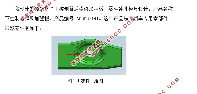 This article is for automotive reinforcing plate punching mold design, the design process is to identify the difficulties hole punching, die structure, determine the mold punching program, important parts processing technology, economy, and based on the shape of the punch How to select press, punch, in addition to select the discharge mode design positioning is also very important. The design process, the preferred standard parts, can improve design efficiency and cost savings. The outstanding feature of the design is the use of single-step mode, simple structure, manufacturing cycle is short, low price, product versatility, compared with mechanization and automation to achieve operational. This design can provide a reference for similar simple stamping die design.