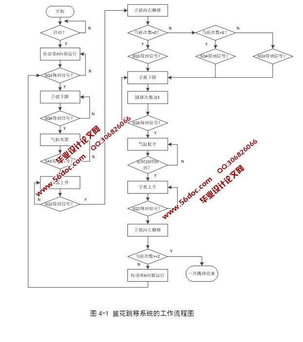基于PLC的盆花跳移机控制系统的设计(含原理图,梯形图程序)(开题报告,论文7400字,流程图,原理图,PLC梯形程序)