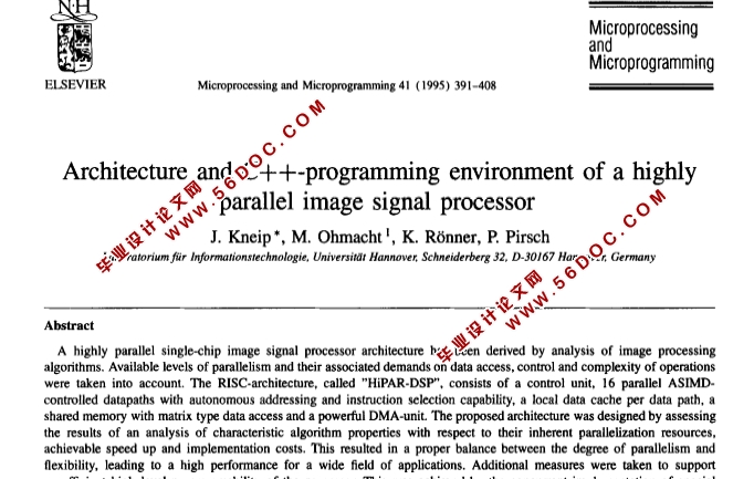 p架构和C + +编程环境的一种高度并行图像信号处理器(中文13000字,英文PDF)