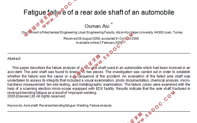 汽车后桥半轴疲劳失效(中文5000字,英文3000字)