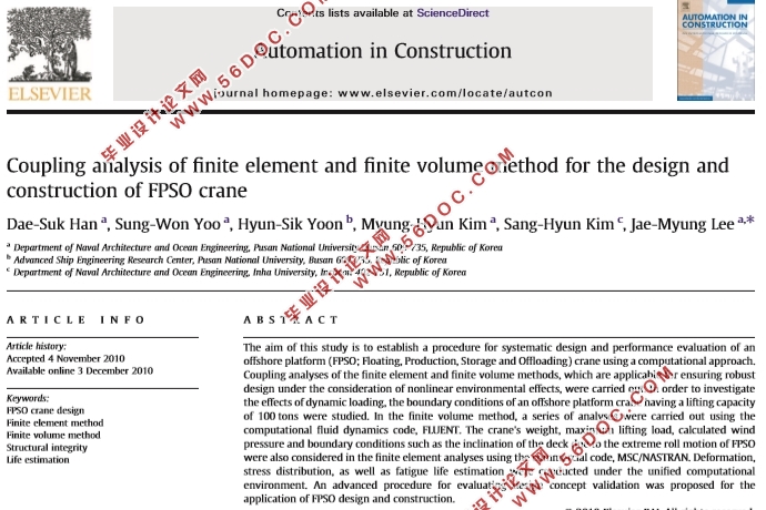 FPSO起重机设计与施工中有限元与有限体积法的耦合分析(中文8000字,英文PDF)