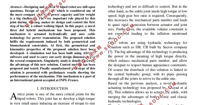三维自由度脚踝结构对于仿人类机器人的应用(中文5000字,英文PDF)