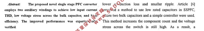 能降低电压应力的新型高效单级PFC变换器的研究 来源:56doc.com 资料编号:5D23532 资料等级:★★★★★ %E8%B5%84%E6%96%99%E7%BC%96%E5%8F%B7%EF%BC%9A5D23532 资料以网页介绍的为准,下载后不会有水印.资料仅供学习参考之用. 密 保 惠 帮助 我要下载该资源 资料介绍 能降低电压应力的新型高效单级PFC变换器的研究(中文6000字,英文PDF) 摘要 新型的单级PFC变换器采用两个辅助绕组来得到低输入电流THD并实现低电压应力能流过大容量电容和高效率,这一改进的性能已通过实验验证。