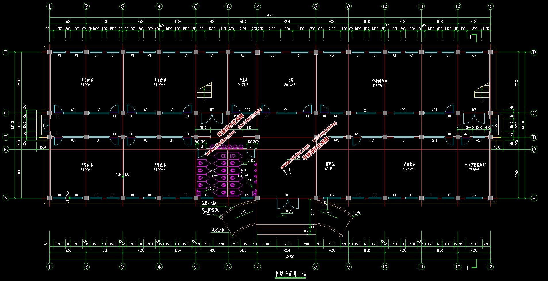 盐城大丰五层5000平米中学教学楼设计(建筑图,结构图)
