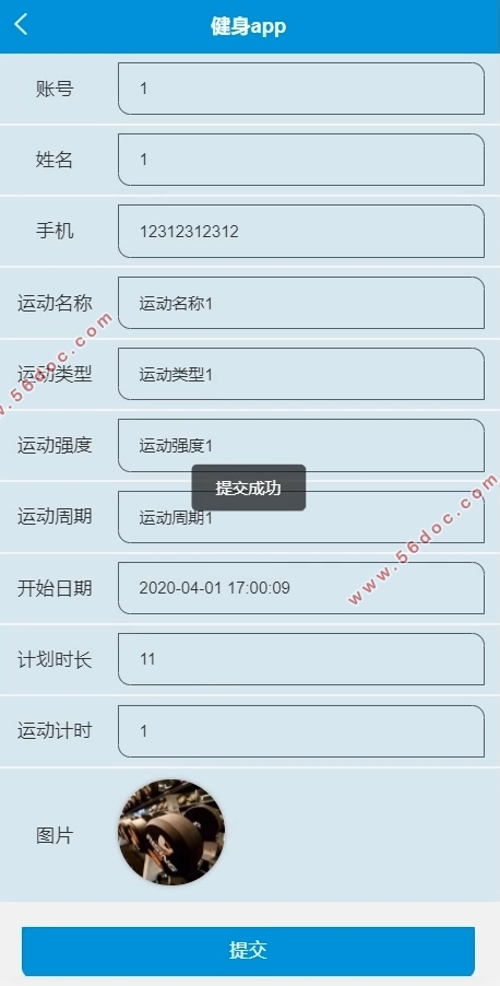 基于安卓Android的健身APP的设计与实现(SSM,MySQL)(含录像) 来源:56doc.com 资料编号:5D25970 资料等级:★★★★★ %E8%B5%84%E6%96%99%E7%BC%96%E5%8F%B7%EF%BC%9A5D25970 资料以网页介绍的为准,下载后不会有水印.资料仅供学习参考之用. 密 保 惠 帮助 我要下载该资源 资料介绍 基于安卓Android的健身APP的设计与实现(SSM,MySQL)(含录像)(论文说明书10000字,程序代码,MySQL数据库) 系统功能分析 本系统实现一个基于安卓开发的健身app,分为服务器端和客户端两种用户。服务器端可以在网站后台进行管理;用户通过手机端自由登录客户端平台进行管理。具体功能描述如下: 服务器端模块包括: 1. 个人中心:可以修改自己的登录密码,修改自己的信息。 2. 用户管理:可以对用户信息进行添加、查看、修改或删除。 3. 运动类型管理:可以对运动类型信息进行添加、查看、修改或删除。 4. 健身器材管理:可以对健身器材信息进行添加、查看、修改或删除。 5. 器材类型管理:可以对器材类型信息进行添加、查看、修改或删除。 6. 运动计划管理:可以对运动计划信息进行添加、查看、修改或删除。 7. 运动小知识管理:可以对运动小知识信息进行添加、查看、修改或删除。 8. 健康数据管理:可以对健康数据信息进行添加、查看、修改或删除。 9. 健身计划管理:可以对健身计划信息进行添加、查看、修改或删除。 10. 系统管理:可以查看或回复客服中心信息,对轮播图信息进行添加、查看、修改或删除,对健身动态信息进行添加、查看、修改或删除。。 客户端模块包括: 1. 用户注册/登录:实现用户的注册和登录。 2. 健身器材:实现健身器材的列表显示,点击可以查看健身器材详情,用户登录后可以收藏、点赞、踩或评论。 3. 运动计划:实现运动计划的列表显示,可以按运动名称进行搜索,点击可以查看运动计划详情,用户登录后可以收藏计划,可以开始计划,可以评论。 4. 我的:用户登录后可以进入个人中心,在个人中心可以添加、查看、修改或删除自己的计划,可以查看健康数据,可以查看自己的收藏,可以发送信息。 开发语言:Java 管理端框架:SSM 管理端数据库:MySQL 管理端开发软件:Eclipse/MyEclipse/ 安卓端框架:uniapp 安卓端开发软件:HBuilder X 开发模式:混合开发 目录 1 绪论 5 1.1 系统开发目的 5 1.2 系统开发意义 5 2 关键技术介绍 6 2.1 Android简介 6 2.2 JSP技术概述 6 2.3 MYSQL简介 7 2.4 JAVA语言简介 8 3 需求分析与设计 9 3.1 可行性分析 9 3.1.1技术可行性 9 3.1.2 经济可行性 9 3.1.3操作可行性 9 3.3 系统功能分析 9 3.4 系统功能结构图 10 3.5 系统流程分析 11 3.6 系统运行环境 12 3.7系统设计原则 12 4数据库设计 14 4.1 数据库逻辑结构设计 14 4.2 数据库物理结构设计 15 5 系统的详细设计与实现 21 5.1 服务器端实现 21 5.1.1 后台登陆页面 21 5.1.2 用户管理页面 21 5.1.3 健身器材管理信息页面 22 5.1.4 健身计划管理信息页面 22 5.2 客户端实现 22 5.2.1 登录模块客户端页面 22 5.2.2 注册页面 23 5.2.3 健身器材页面 24 5.2.4 运动计划页面 25 5.2.5 用户信息页面 26 6系统测试 28 6.1 测试的目的 28 6.2 测试的步骤 28 6.3 测试的主要内容 28 结束语 30 致 谢 31 参考文献 32